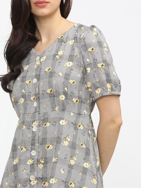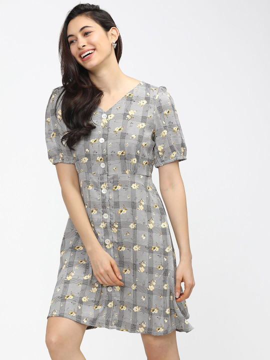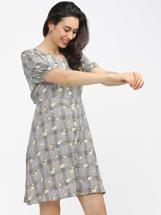 - Black floral print fit & flare dress