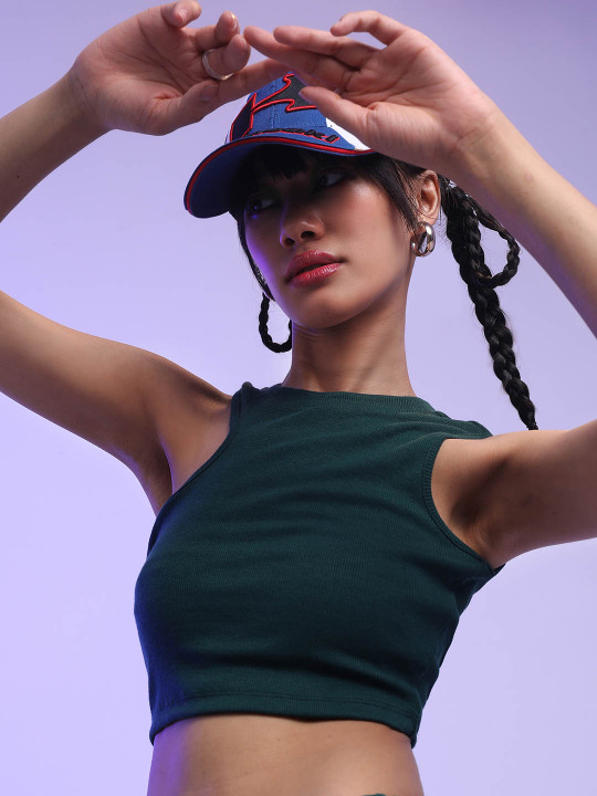 Green Crop Fitted Top for Women
