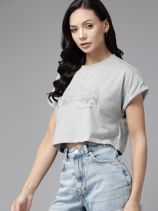• Product Type: Grey & Black Crop Regular Top