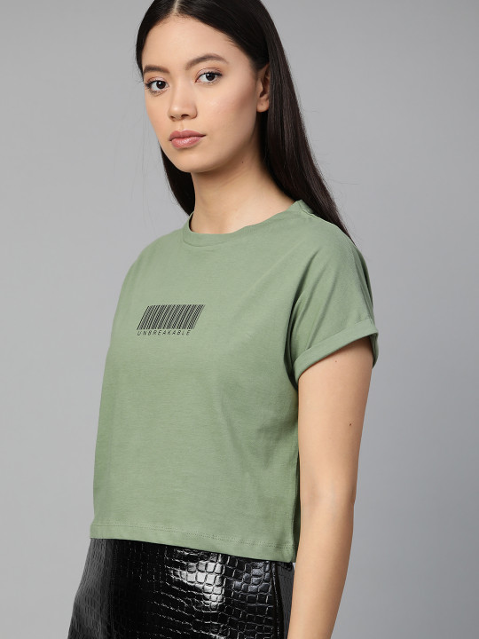 Olive Green Solid Boxy Top