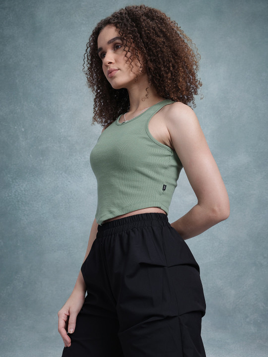 Product: Green Crop Fitted Top