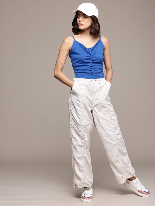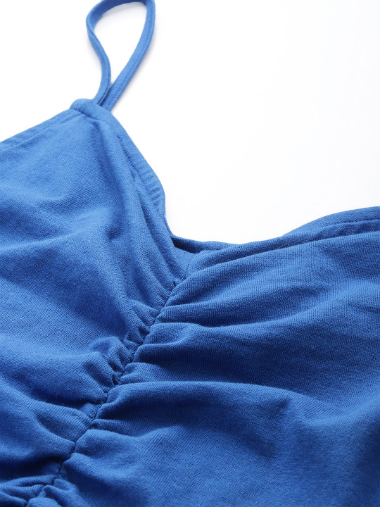 Blue solid regular-fit top featuring shoulder straps, a clean sleeveless design, and soft knitted fabric for everyday comfort.