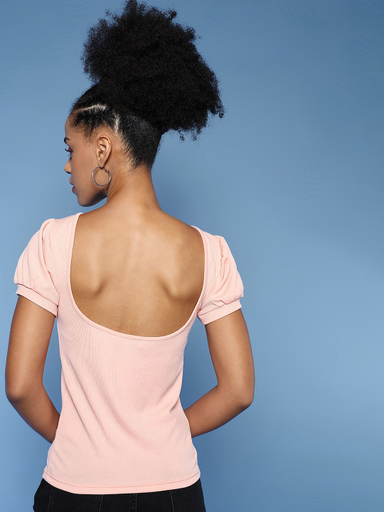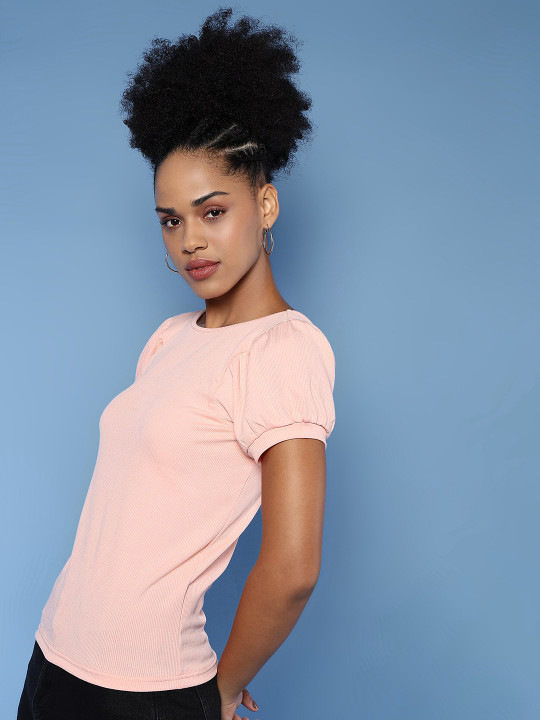 Round neck with short puff sleeves