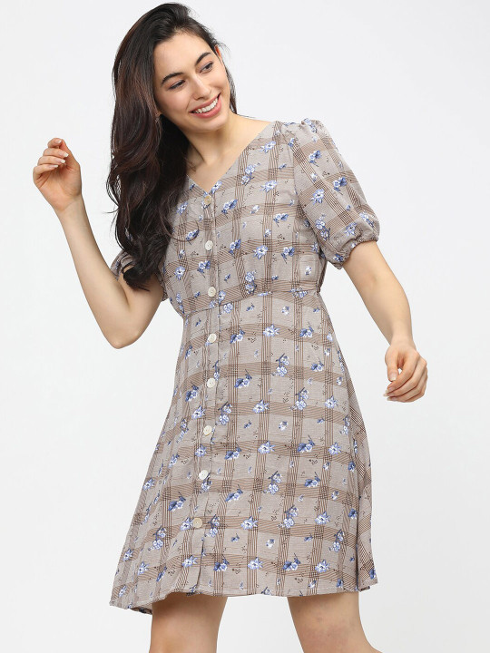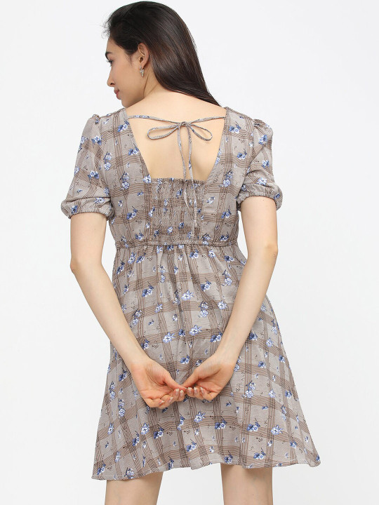 Brown Floral Print Fit & Flare Dress