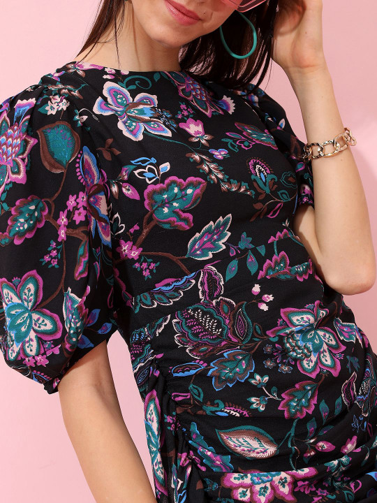 Black Floral Print Sheath Dress