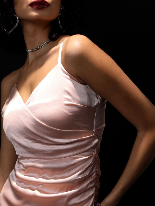 Peach-coloured solid wrap dress